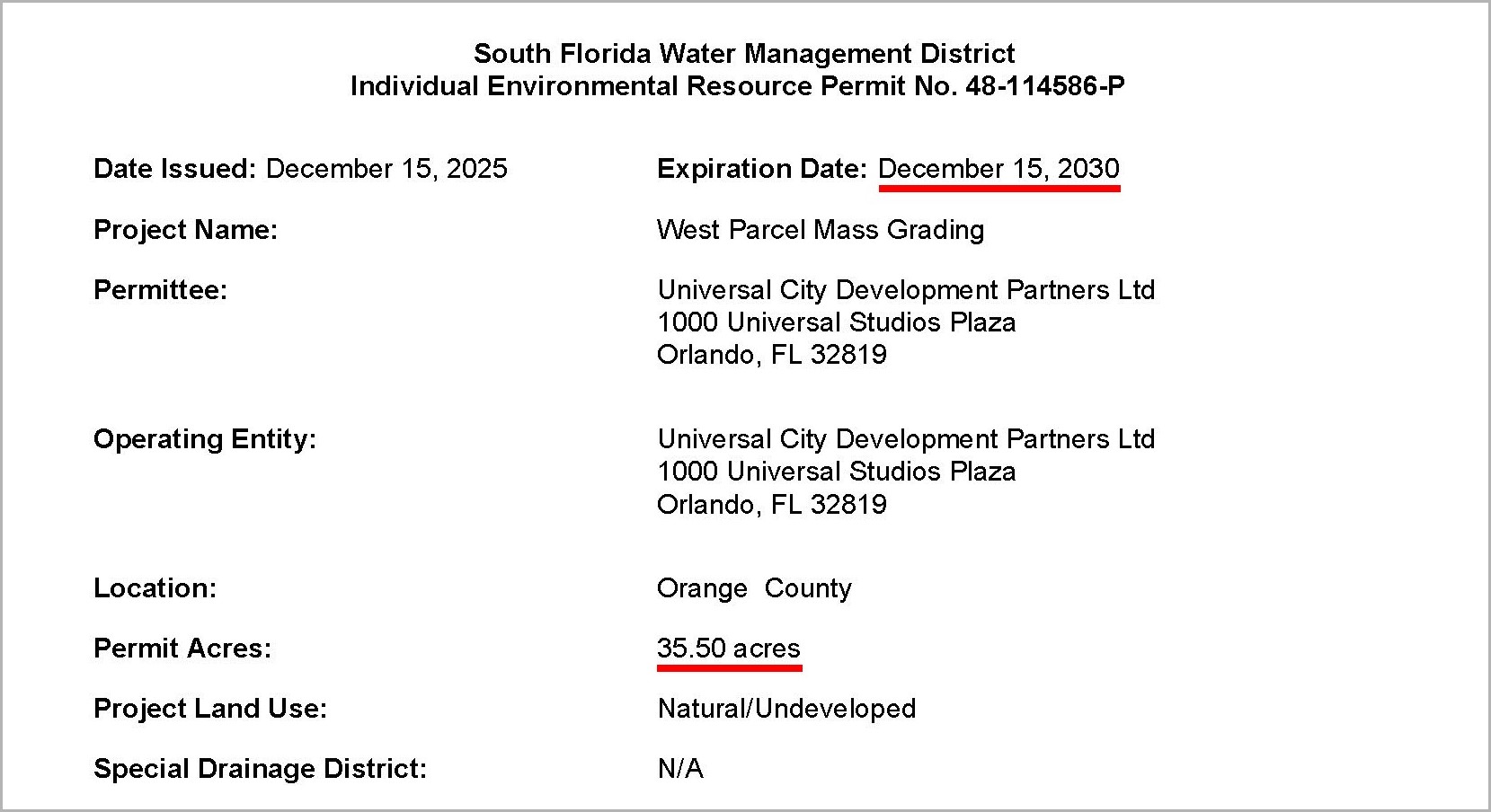 Located to the west of Epic Universe, the project known in permits as “West Parcel Mass Grading” recently saw some minor updates.