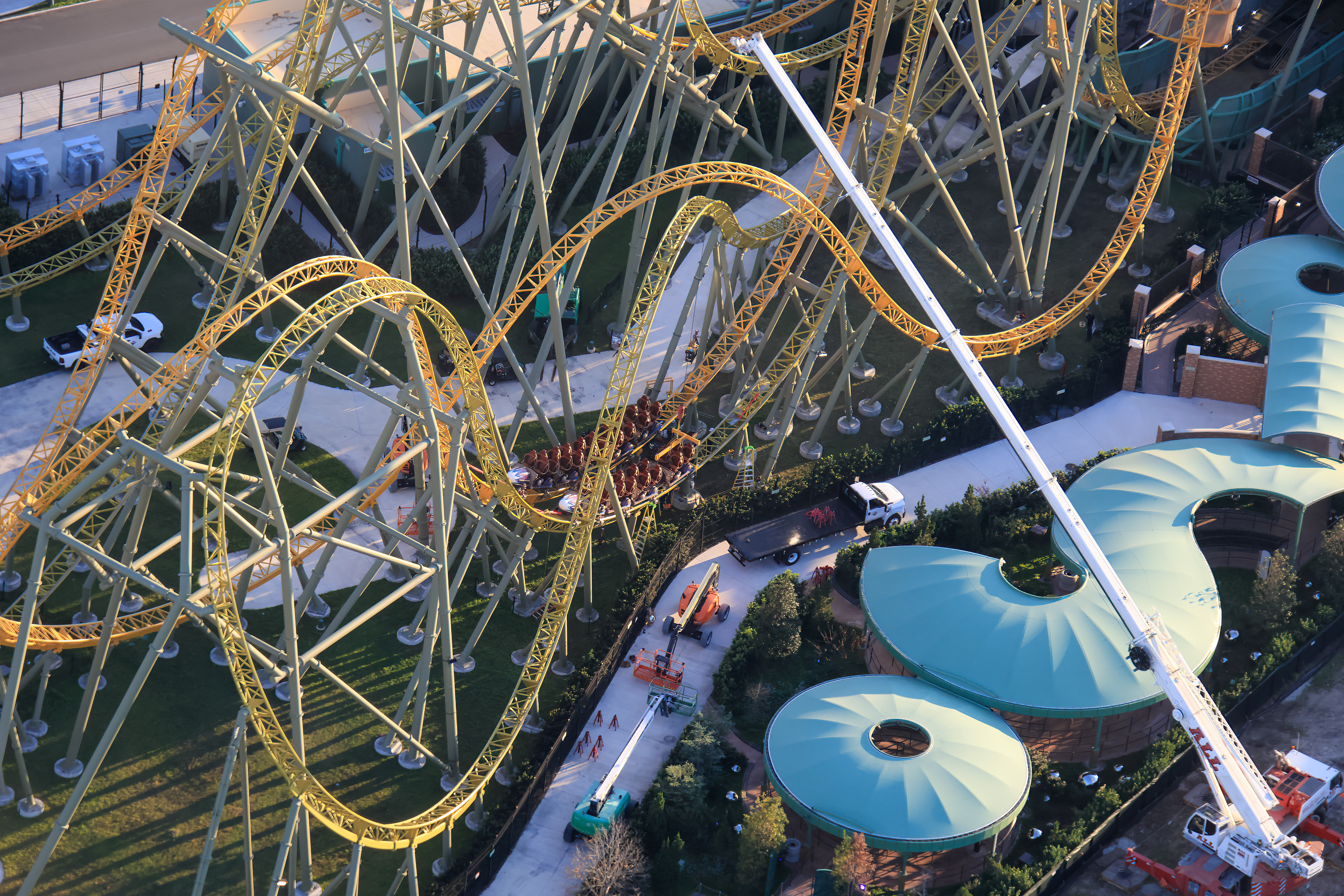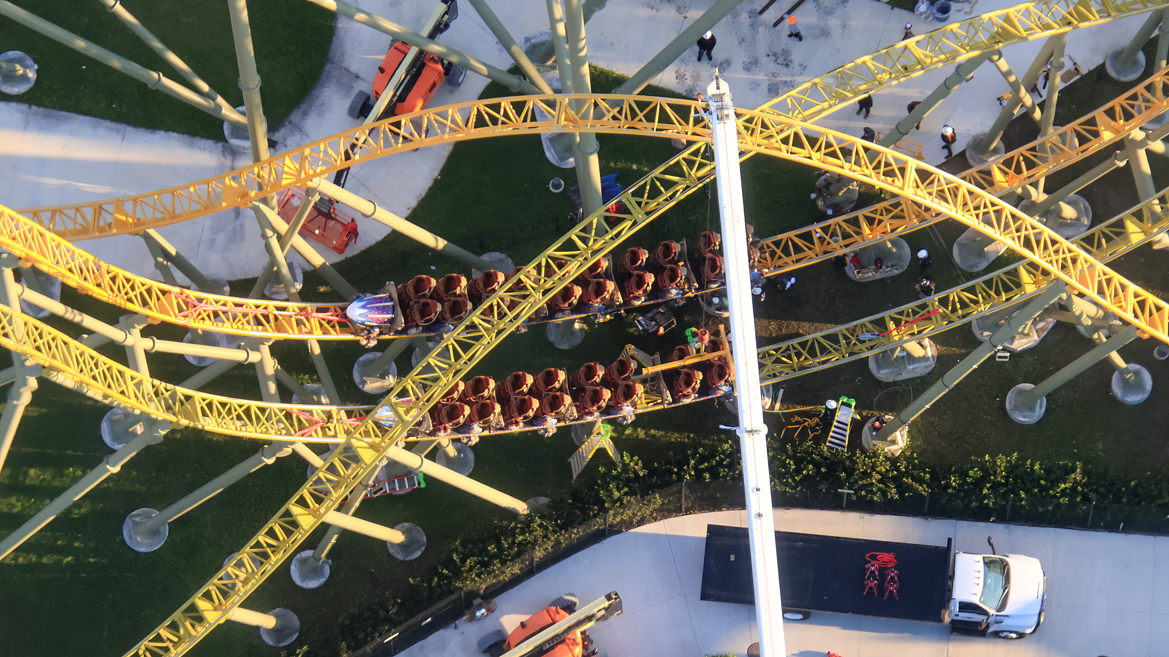 Also visible in the staging lot near Epic Universe, the first pieces of track have arrived for the now announced Fast & Furious: Hollywood Drift coaster.