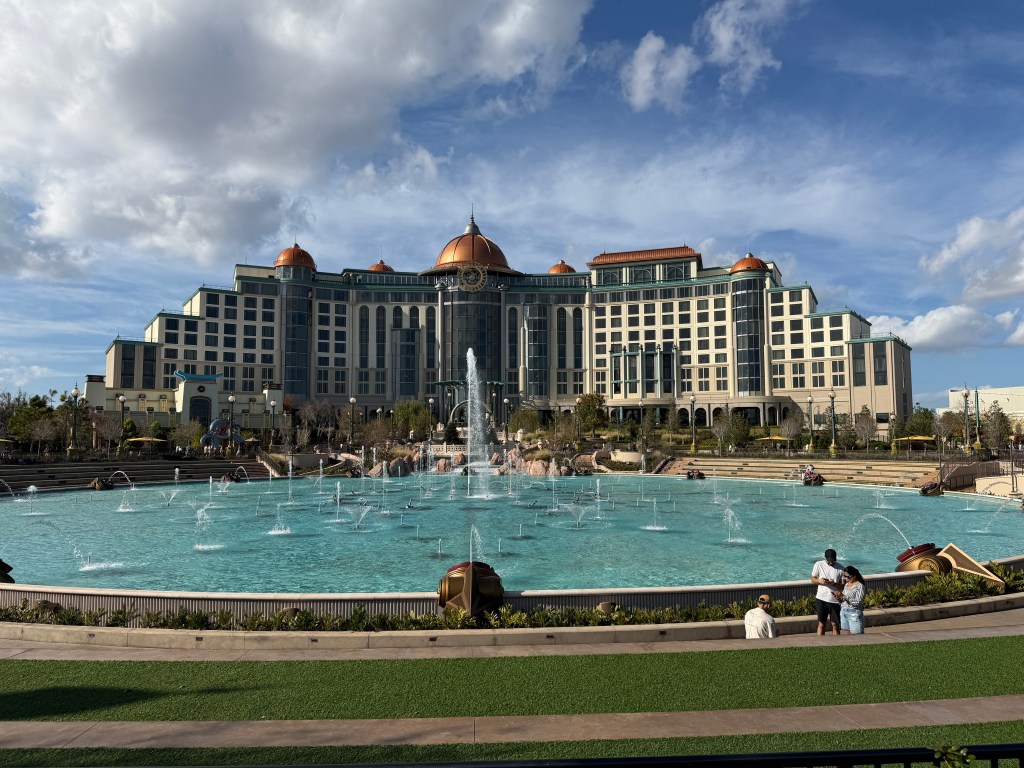 The current nighttime show, which happens nightly around park close, is simply referred to as “The Cosmos Fountain,” the name of the fountain in the middle of the park.