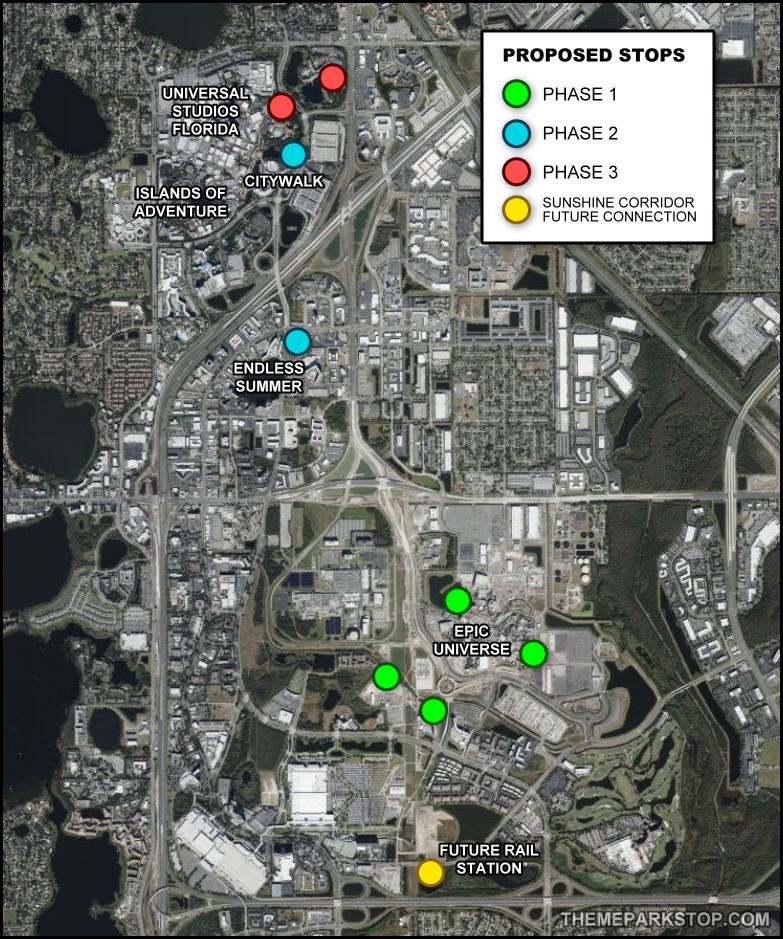 The previously announced phases included stops near the CityWalk parking garages, several of the on-site hotels, and Epic Universe.