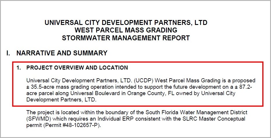 As part of this mass grading project, Universal has submitted plans to alter the retention ponds and drainage currently found on the section of the parcel in question, including adding additional stormwater drainage measures.