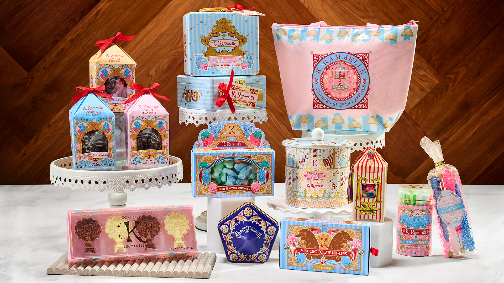 Universal just shared photos of some of the confectioneries that will be available for Epic Universe’s Wizarding World, which are branded with the K. Rammele name. The items include chocolate nifflers, and of course various types of caramels.