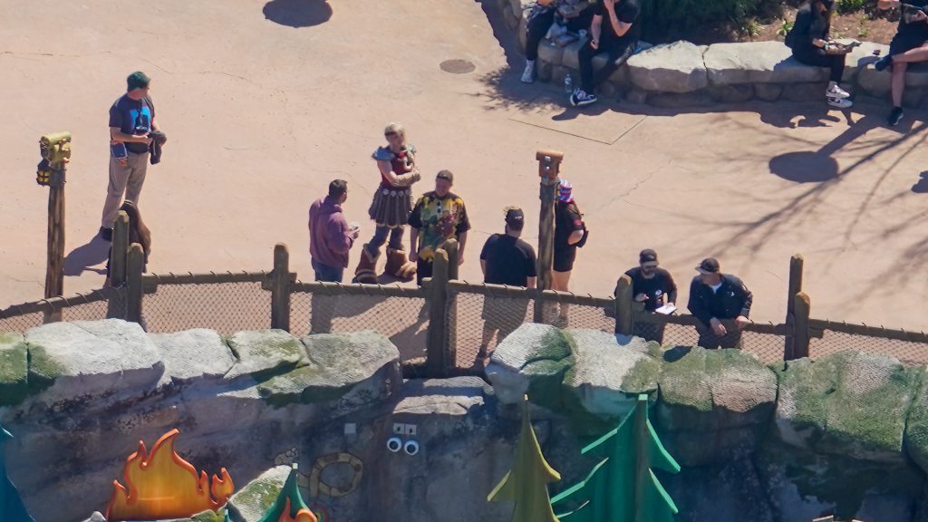 Over at How to Train Your Dragon – Isle of Berk, multiple character meet and greets can be spotted, including Astrid seen wandering the pathways