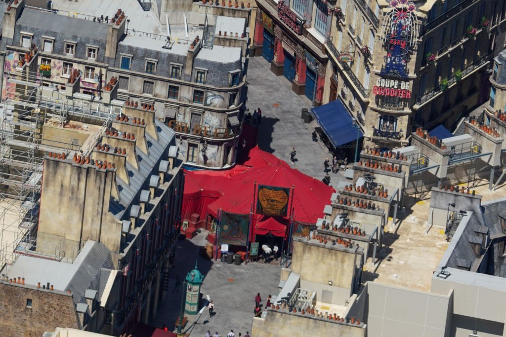 A Team Member can be seen here using a wand on the Chez Flamel spell-casting experience, located within the side alley area of this world.