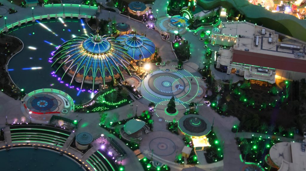 LED lights are even embedded in the paths and courtyards throughout the middle of the park.