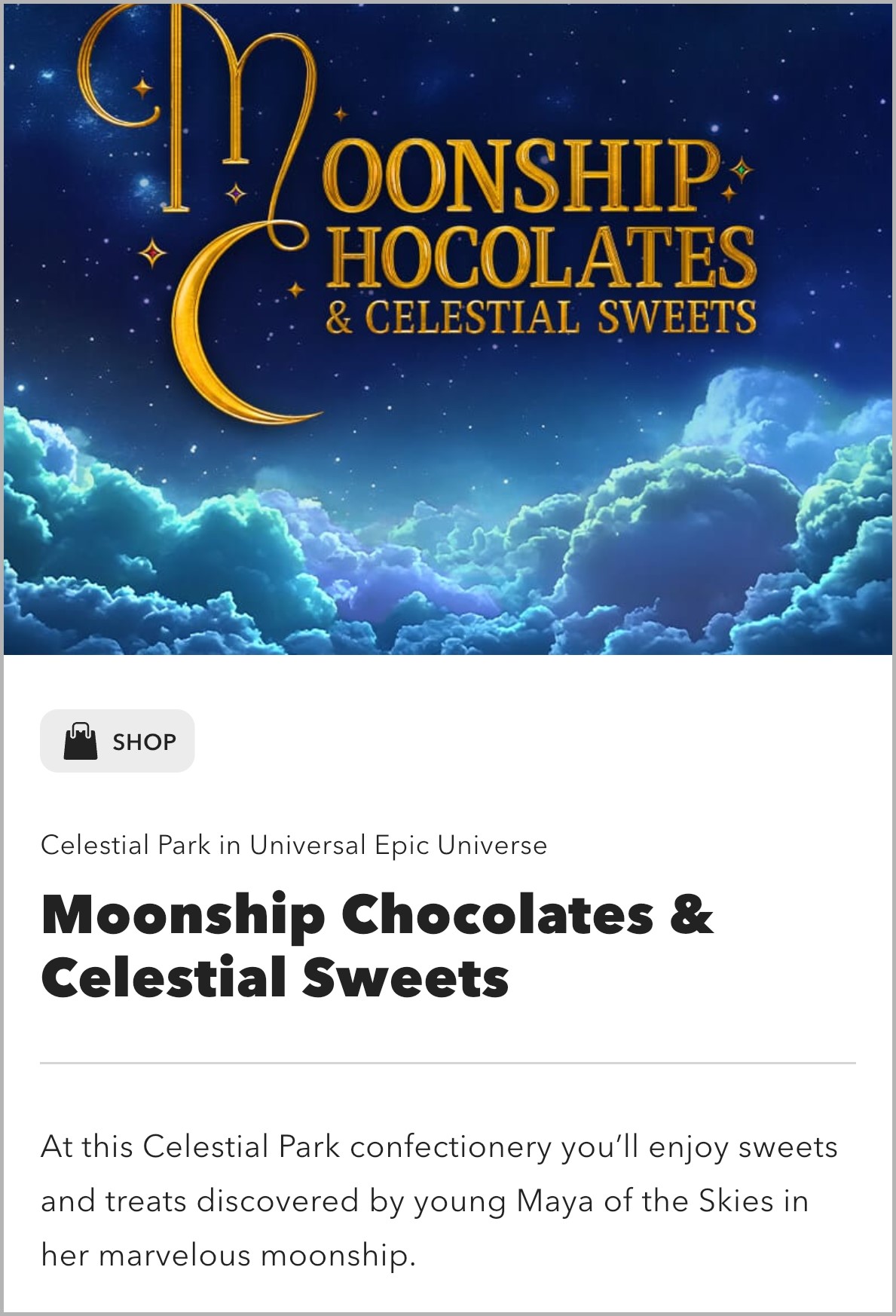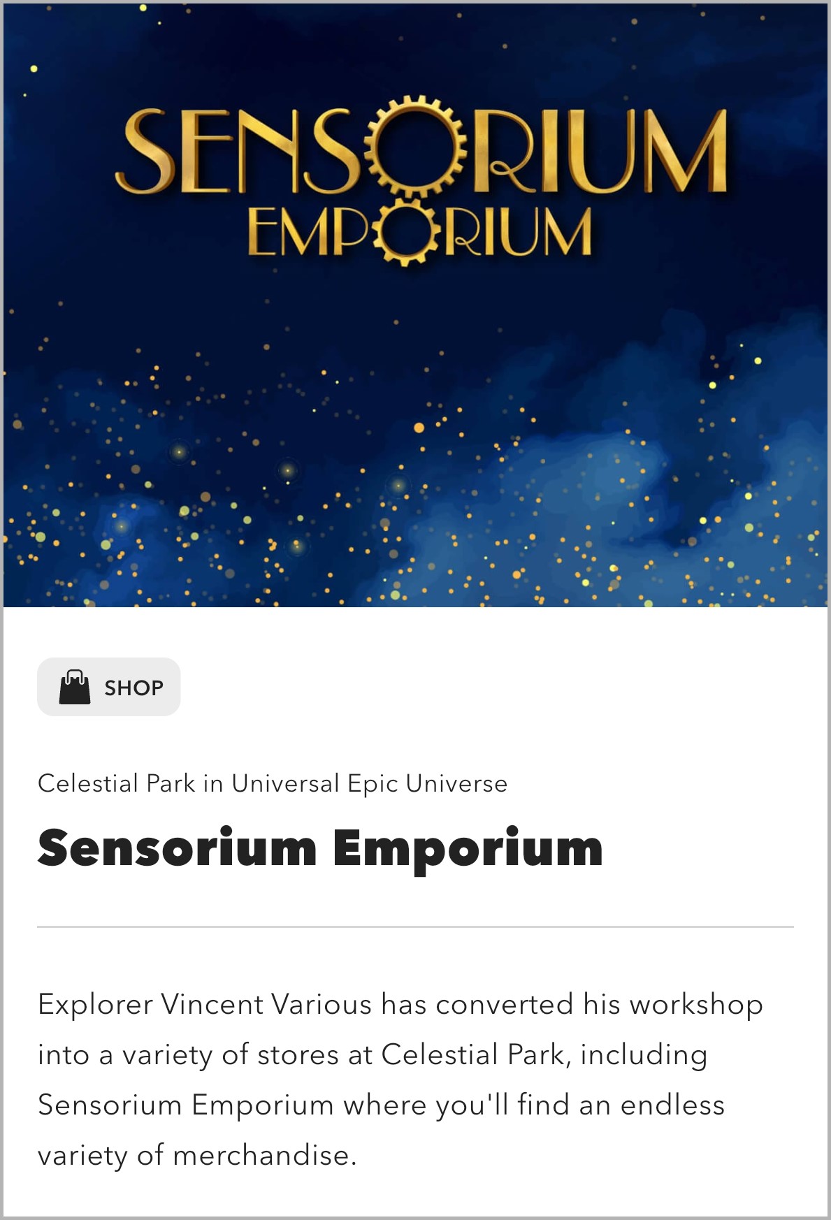 New information for Moonhip Chocolates & Celestial Sweets reveals that it features an original character named Maya of the Skies. The Sensorium Emporium, part of a multi-space retail location within Celestial Park had an original character revealed as well, an explorer named Vincent Various.