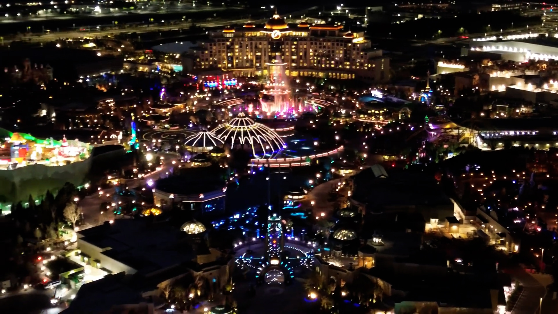 The footage also includes a good view of the main show fountain running, which we now know is confirmed to be named The Cosmos Fountain.