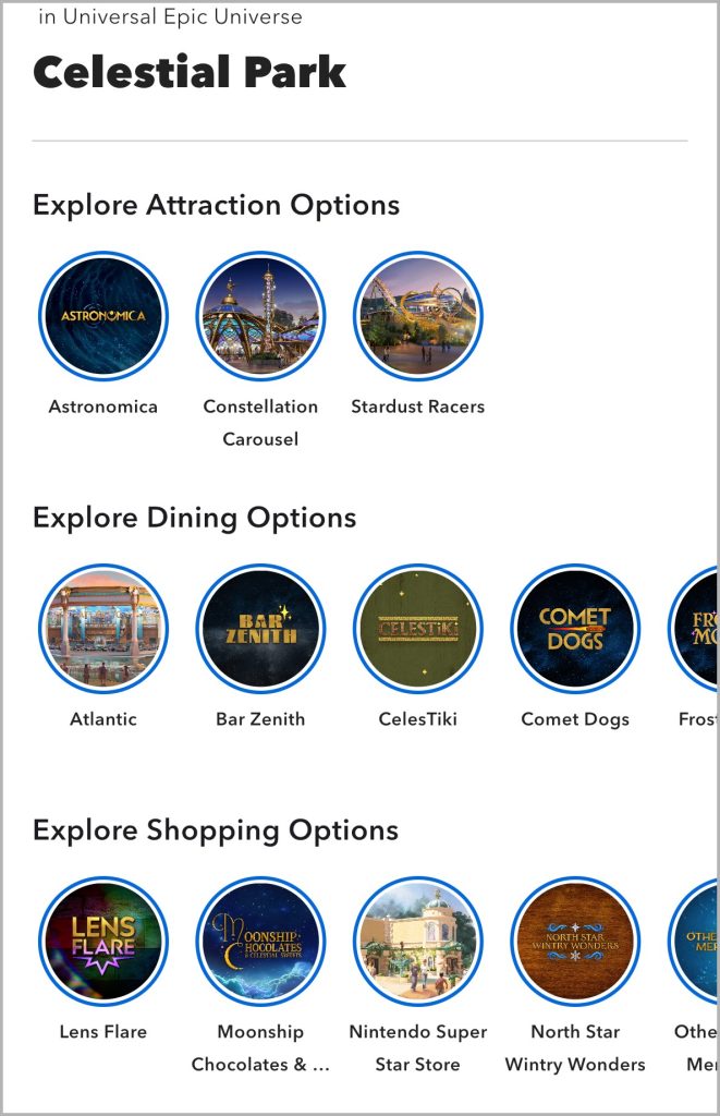 The overall map now includes Epic Universe for the first time, and details for most attractions, shops, and dining can be viewed within the app.
