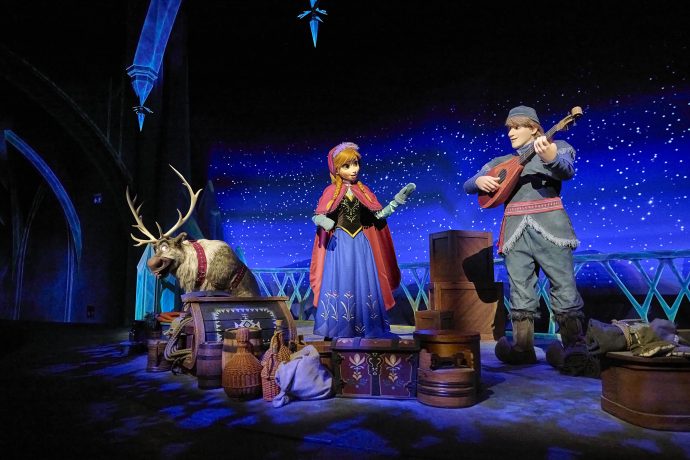 Many of these figures were groundbreaking in the world of Audio-Animatronics – not just as part of the first Frozen attraction, but also as the first attraction to have all electric Audio-Animatronics figures, and the first to combine electric motors and 3D printing.