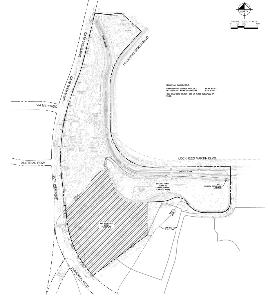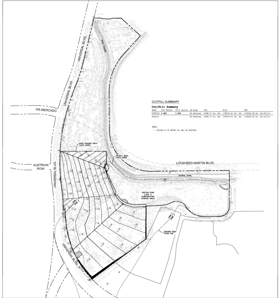 Current permits are for the grading of a 35 acre section along the south side of the parcel. Permits say this work is to “support the future development on an 87.2 acre parcel along Universal Boulevard.”