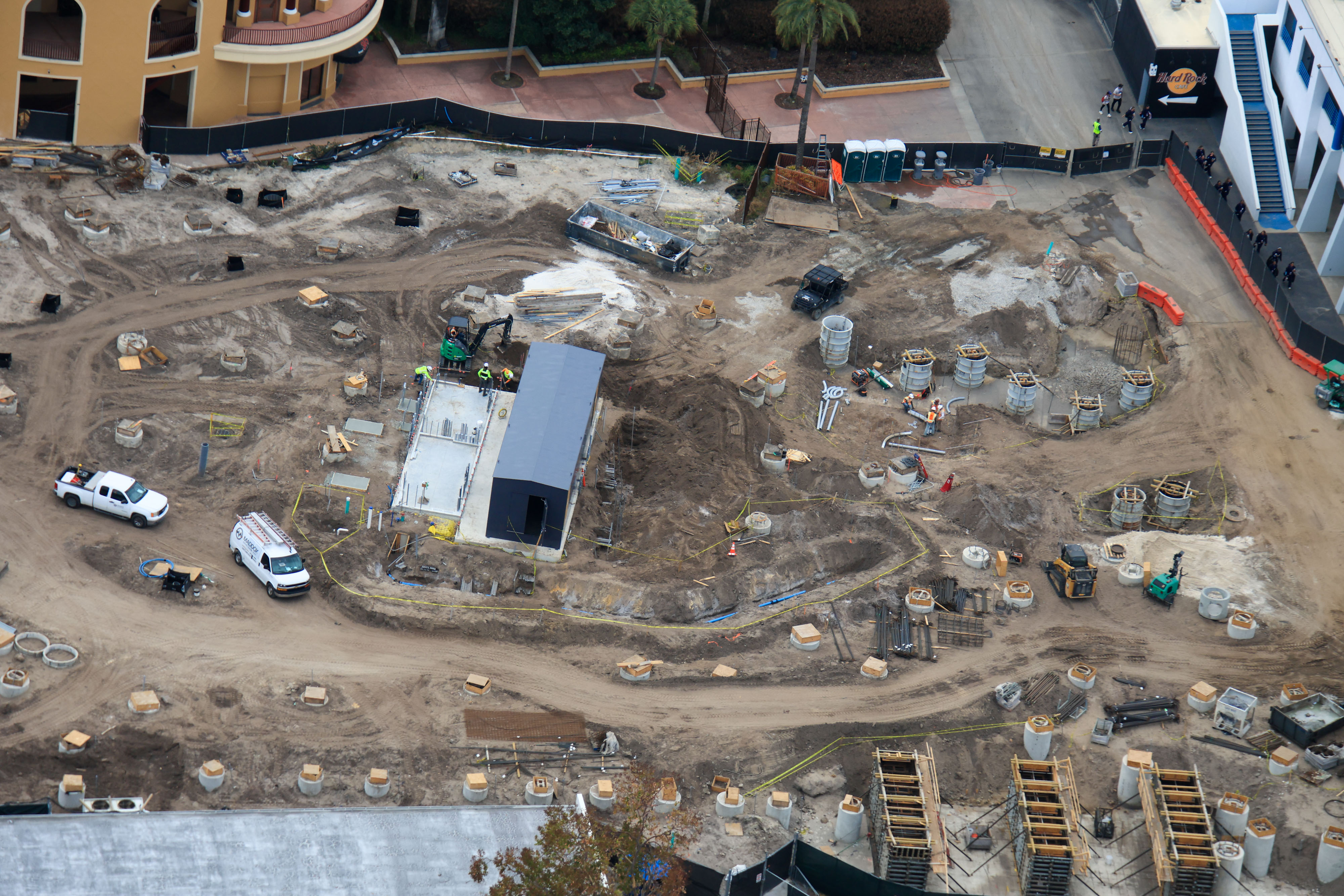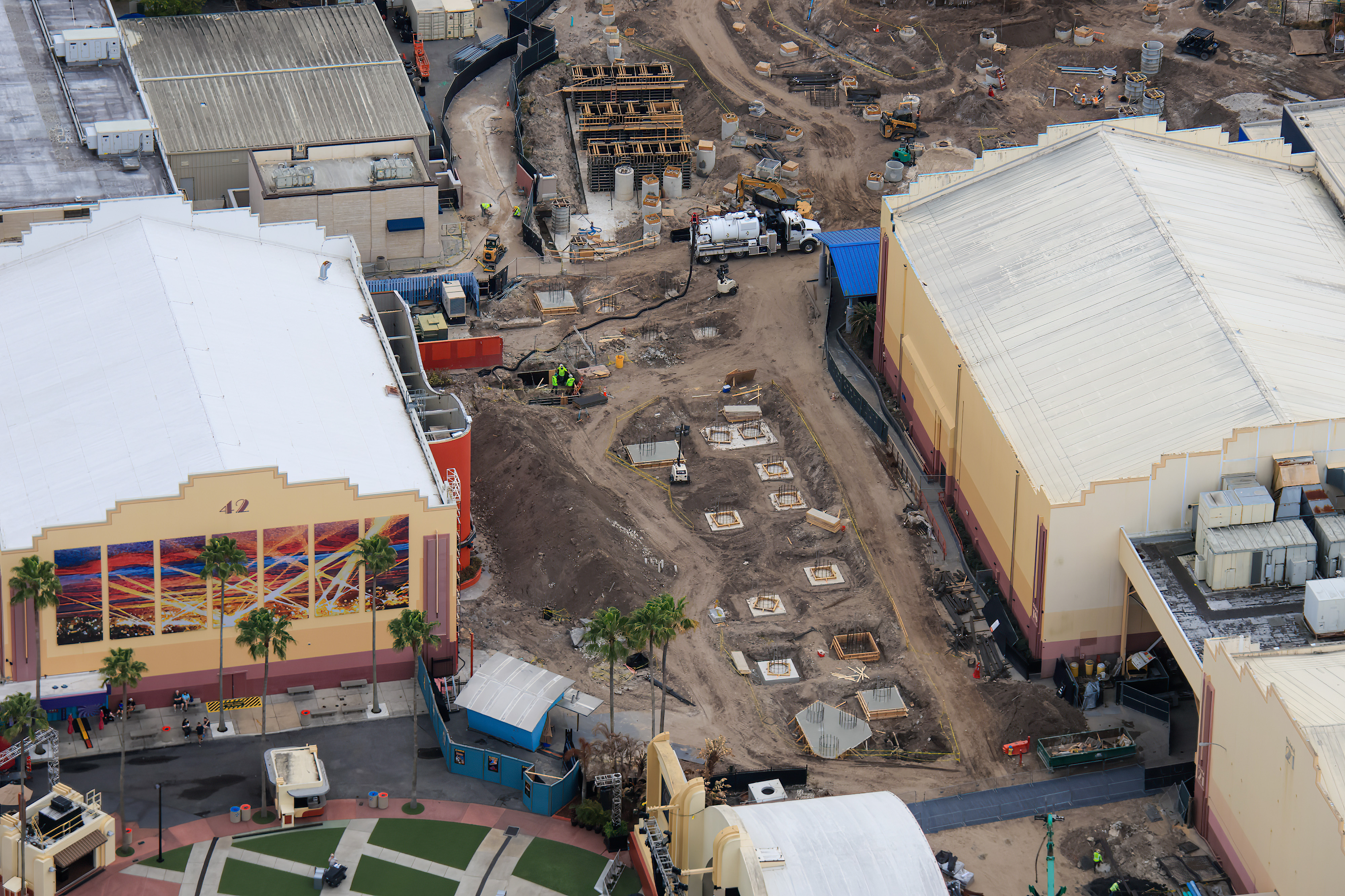 Officially announced in January, construction on Orlando’s version of Fast & Furious: Hollywood Drift is well under way. Footers for the new ride have continued to multiply, expanding beyond the original footprint for Hollywood Rip Ride Rockit, the coaster it is replacing.