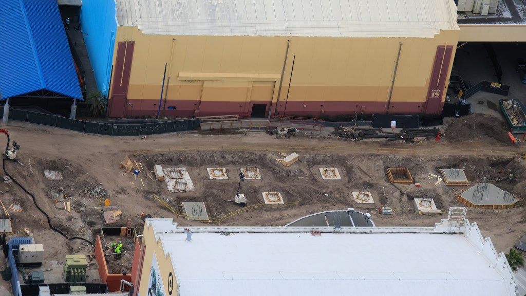 The newest footers for the ride, which are being poured now, are located where the former station was for Hollywood Rip Ride Rockit.