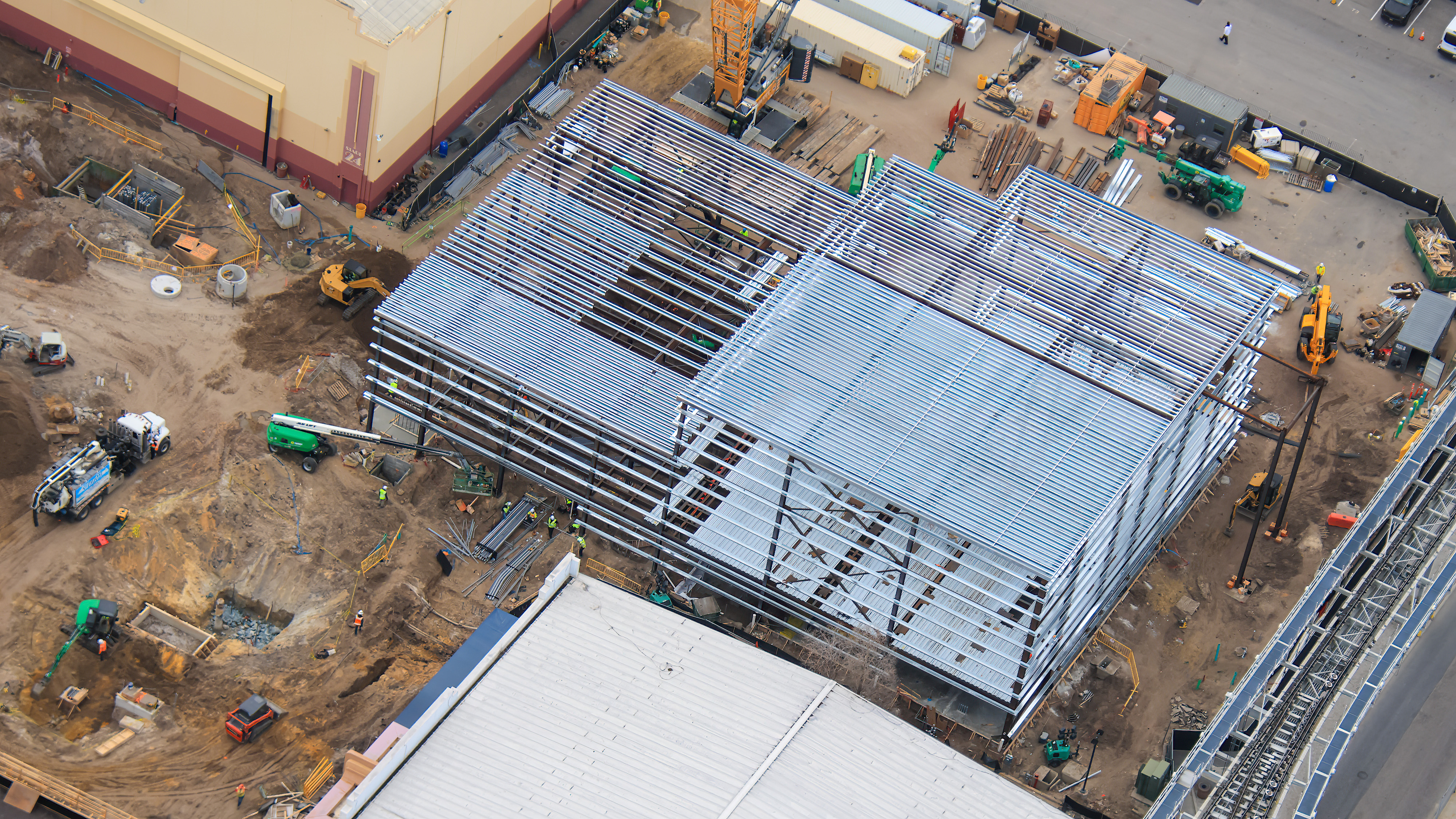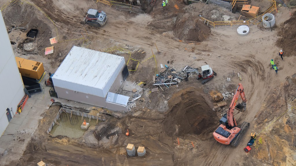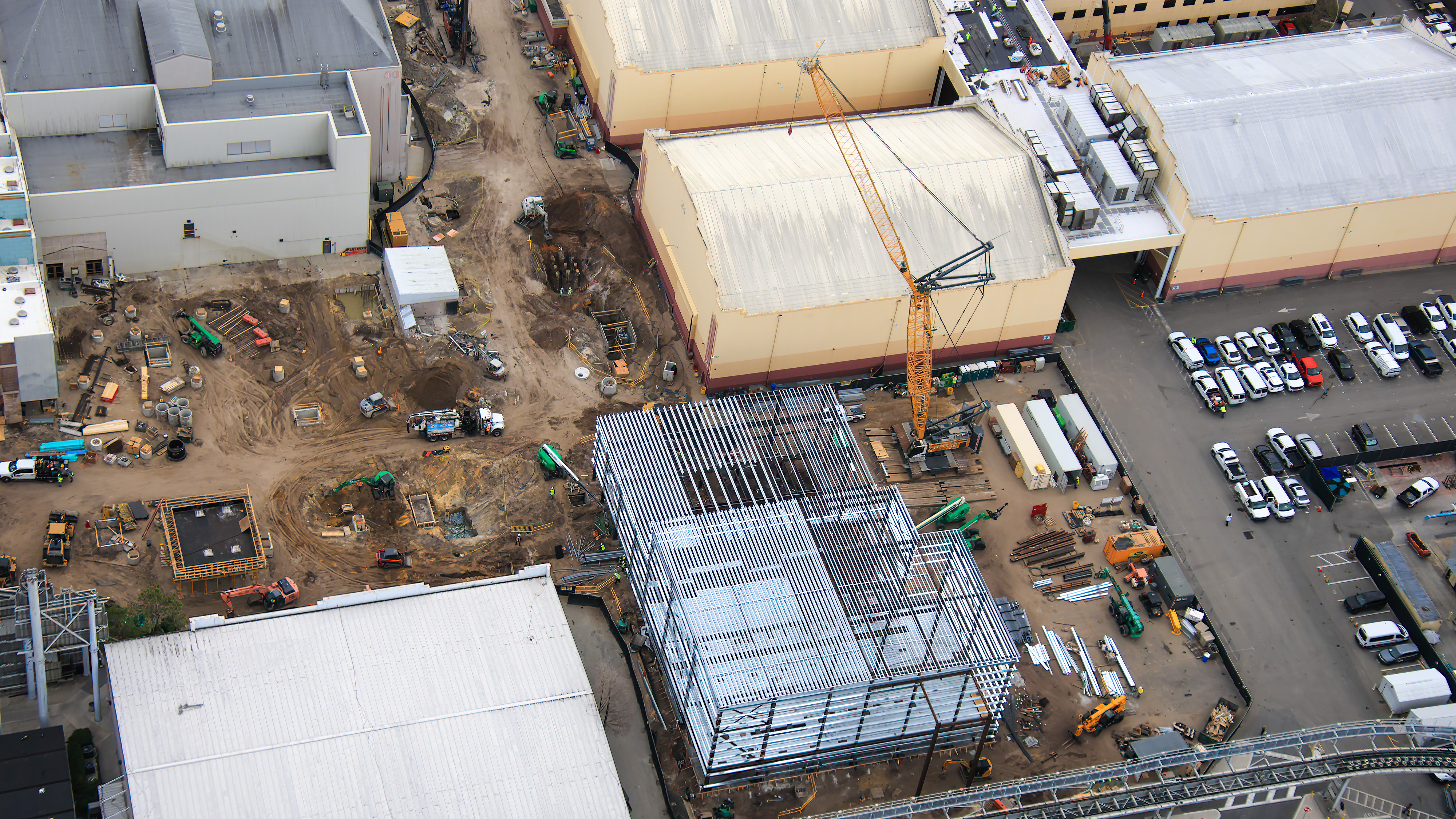 In addition to the maintenance bays for the new coaster, some of the utility rooms and connections are being relocated to this new large structure.